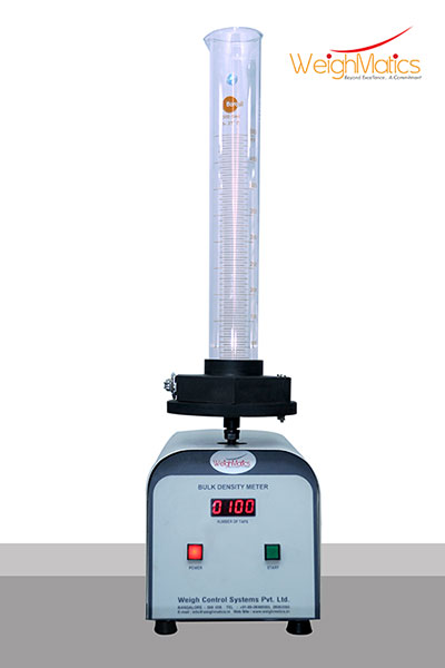 The bulk density meter is designed to measure the bulk density of powders and granular materials. It is specially useful in process handling of powders such as tea, coffee, chicory, soups, sugar, milk, rice, wheat, cereals, pulses, oats, flour, etc. The Bulk Density Meter is also called as a Jogger system consists of a pan holding a 500cc measuring flask vibrating at a fixed amplitude of 3mm and a preset number of strokes.